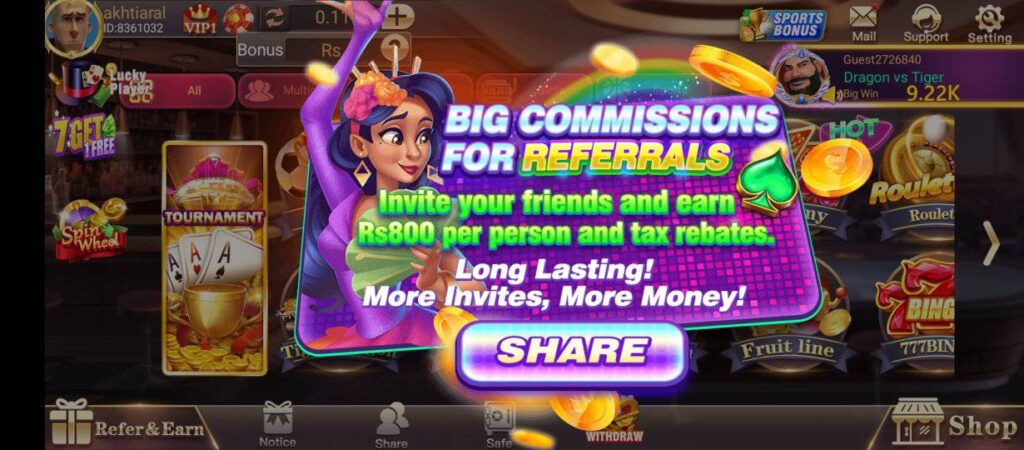 The app includes much more than Teen Patti. Players can enjoy Rummy, Andar Bahar, Dragon Tiger, Poker, and casual games like Ludo and Mines. This variety in gameplay keeps users interested and increases their chances of earning. From high-stakes table games to low-risk fun modes, every user finds something that matches their playing style.